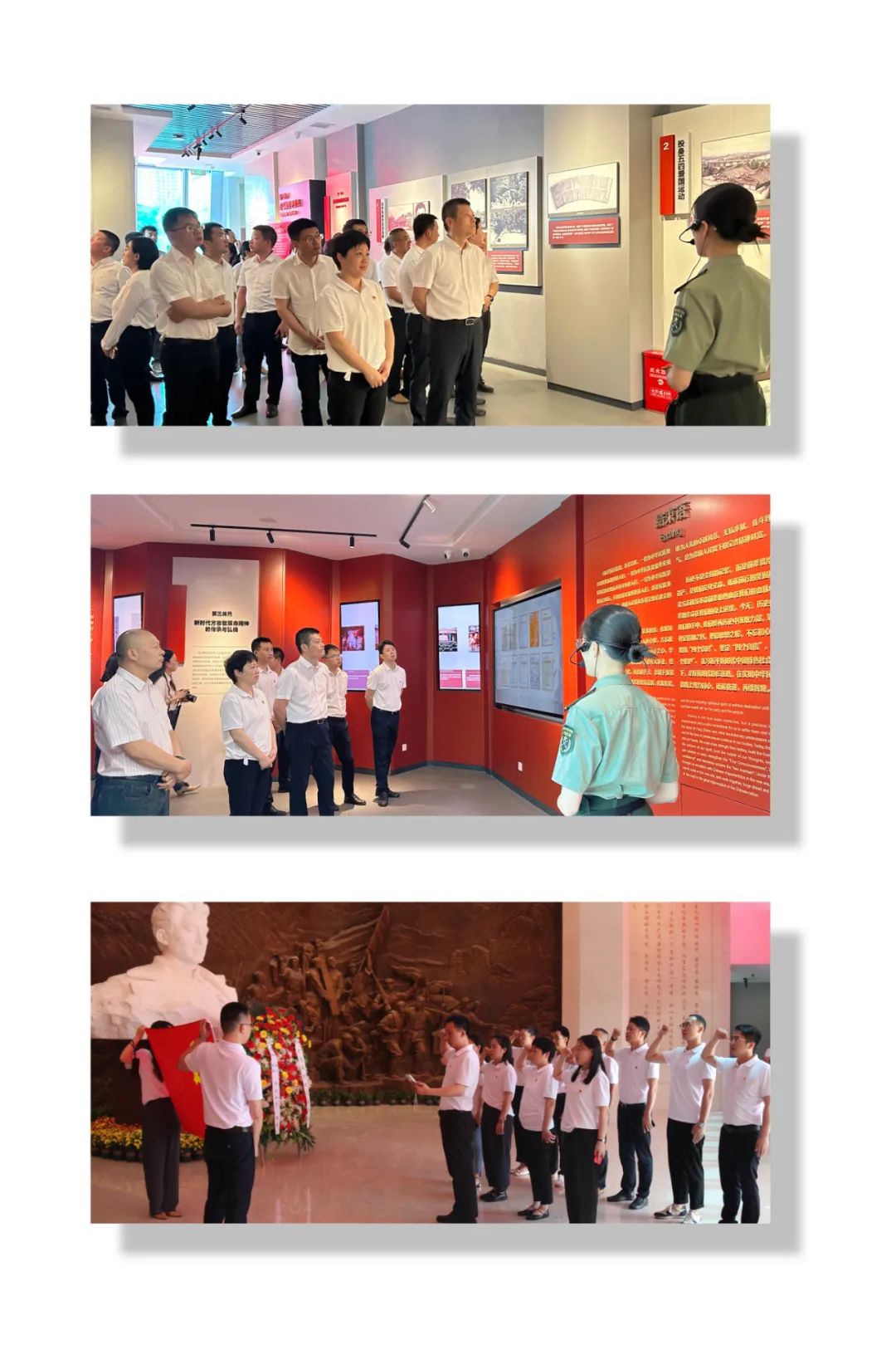 国药器械江西公司总经理杨总首先带领大家为方志敏烈士敬献花篮,表达了无限敬意;随后全体党员及干部跟随讲解员参观了纪念馆,聆听并回顾了方志敏烈士的生平与革命事迹,通过一张张图片和一件件物品,大家深入地了解了这位伟大的共产主义战士,深深为方志敏同志“爱国、创造、清贫、奉献”的精神感动。共产党员们也通过重温入党誓词,强化党员意识,坚定理想信念。通过接受深刻的政治教育、思想淬炼、精神洗礼,参会人员不断筑牢思想根基。